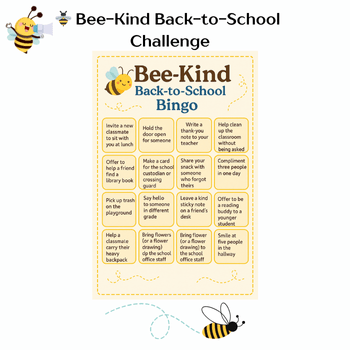 Bee-Kind Back-to-School Challenge ~ With fun Bingo game & Printable card